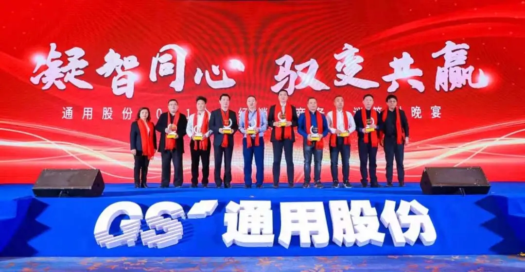 唯創(chuàng)新者強,唯進化者勝。本次會議隆重表彰了為通用股份發(fā)展貢獻力量的經(jīng)銷商合作伙伴,晚宴現(xiàn)場頒發(fā)了2020年度潛力經(jīng)銷商獎、先進經(jīng)銷商獎、優(yōu)秀經(jīng)銷商獎、杰出經(jīng)銷商獎等獎項。他們以高昂的斗志馳騁跨越,在商海的競爭中勇立潮頭,乘風(fēng)破浪,他們是通用股份親密無間的合作伙伴,一座座獎杯記錄了他們的榮譽和付出,會議現(xiàn)場氣氛不斷推向高潮!