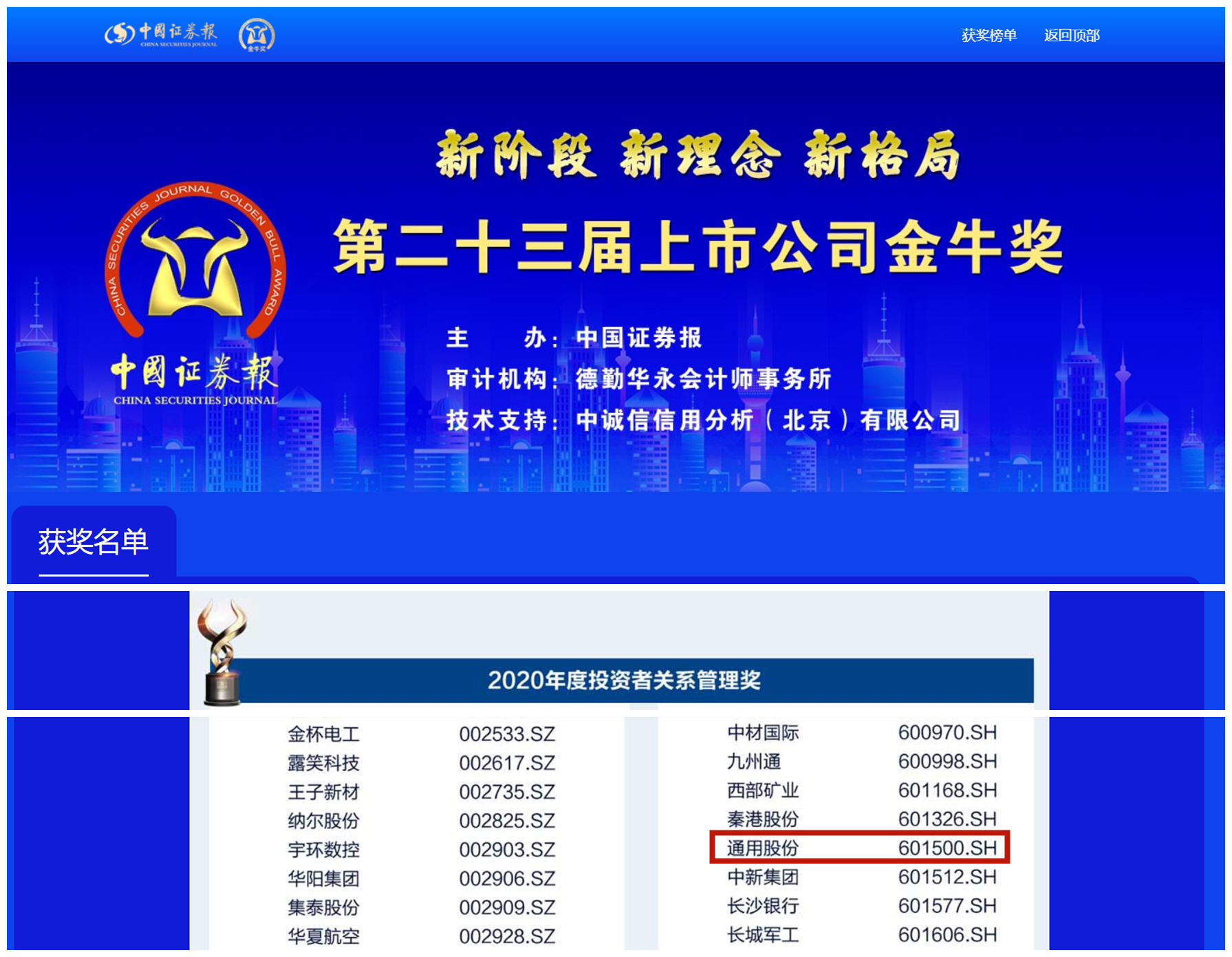 據(jù)了解,金牛獎(jiǎng)是中國證券報(bào)鼎力打造的金融品牌,旨在公開、公正、公平原則下,表彰上一年度業(yè)績(jī)優(yōu)秀、治理卓越、具有崇高使命和社會(huì)責(zé)任感的上市公司。自1999年創(chuàng)立以來,金牛獎(jiǎng)評(píng)選已至第二十三屆,是中國資本市場(chǎng)最具影響力的獎(jiǎng)項(xiàng),在中國資本市場(chǎng)中具有上市公司“奧斯卡”的美譽(yù)。